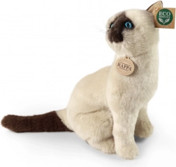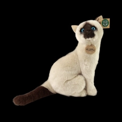 Această adorabilă pisică siameză de pluș, cu dimensiunea de 30 cm, îi va încânta atât pe copii, cât și pe colecționari. Este cusută manual din pluș de înaltă calitate, fin și catifelat, având un aspect realist. Datorită umpluturii eco friendly din sticle PET reciclate, este în același timp prietenoasă cu natura. Se remarcă prin aspect realist, execuție atentă și finețe la atingere.