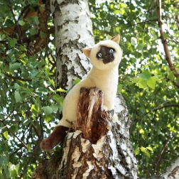 - Execuție realistă: coloritul tipic al pisicii siameze, ochi albaștri și urechi și coadă proeminente.
