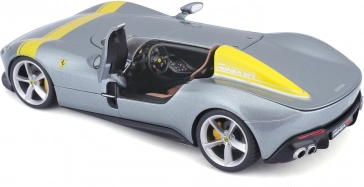 Model metalic superb Ferrari Monza SP1 în culoare argintiu-albastru la scară 1:24 va încânta nu doar colecționarii, ci și toți fanii mașinilor super rapide.