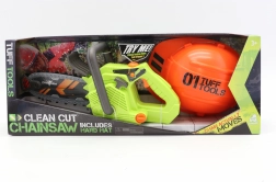 Acest ferăstrău cu lanț pentru copii Tuff Tools este ideal pentru cei mici care adoră jocurile de rol de mecanic sau tăietor de lemne. La apăsarea butonului lateral, ferăstrăul „pornește”, iar trăgaciul activează mișcarea lanțului și sunetele spectaculoase de tăiere, care sporesc autenticitatea jocului.