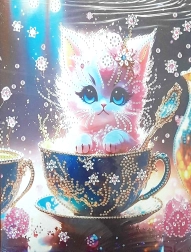 Descoperă farmecul picturii cu diamante și transformă motivul pretipărit al pisoiașului în ceașca de ceai într-un tablou strălucitor, plin de detalii. Datorită cadrului solid, pânza este stabilă și comodă pentru lucru, iar opera finală poate fi ușor expusă sau oferită cadou. Stiloul de aplicare și ceara facilitează lipirea precisă a pietricelelor, astfel încât oricine se poate apuca de creație.