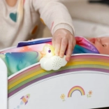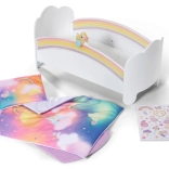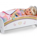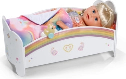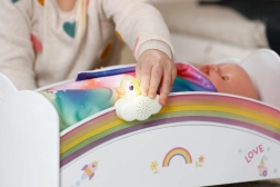 Drăgălașul pătuț curcubeu pentru păpuși BABY born transformă adormirea de seară într-un ritual fermecat. Oferă veioză de noapte luminoasă cu cântec de leagăn, lenjerie de pat reversibilă și design personalizabil cu autocolante. Nu lipsește un compartiment secret sub saltea pentru mici comori.