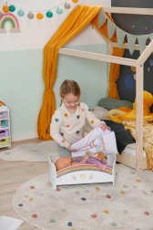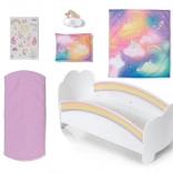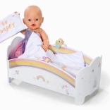 Creați păpușii un loc primitor pentru somn cu încântătorul pătuț curcubeu BABY born. Pătuțul se remarcă prin motive pastelate delicate de curcubeu și norișori, saltea confortabilă și pernă cu păturică reversibile pentru un plus de răsfăț moale.