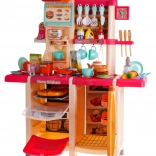 Această bucătărie, realizată cu atenție și în culori vii, stimulează imaginația și jocul de rol. Plita interactivă pornește sunetele de gătit și prăjit însoțite de iluminarea arzătoarelor la rotirea butoanelor. Din robinet curge apă, astfel încât copiii pot „spăla” vasele ca într-o bucătărie adevărată.