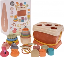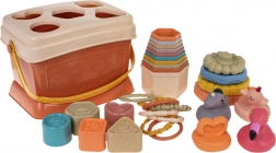 Setul pentru copii cu forme și sortare este un minunat set educațional pentru copii de la 6 luni. Dezvoltă imaginația copilului și îi învață să recunoască culorile și formele. Fiecare element al acestui set este proiectat să atragă atenția copiilor prin culorile vii și formele interesante, încurajându-i să se joace.