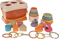 Setul include forme potrivite pentru construcții și sortare, ceea ce ajută la dezvoltarea motricității fine. Copiii pot încerca să construiască turnulețe sau să creeze diferite construcții. Toate piesele pot fi ușor depozitate într-o cutie practică, ajutând copiii să învețe să mențină ordinea.