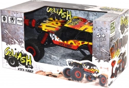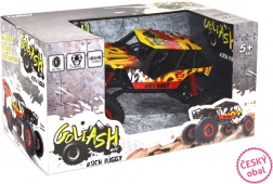 Mașina RC de teren Rock Buggy Goliash face față oricărei provocări. Datorită tracțiunii 4x4, anvelopelor XXL cu aderență ridicată și suspensiei rezistente, se descurcă pe nisip, zăpadă și noroi. Atinge viteze de până la 10 km/h, are faruri LED frontale și un transmițător îmbunătățit de 2,4 GHz, care nu interferează cu altele. Alegerea ideală pentru aventurieri mici și mari.