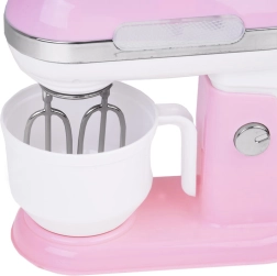 Mixerul planetar este echipat cu un buton ON/OFF care, la activare, aprinde un led roșu. Brațul mixerului poate fi rabatat pentru a facilita extragerea bolului. Mixerul este alimentat cu 2 baterii AAA.