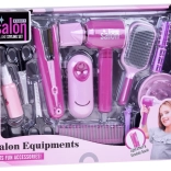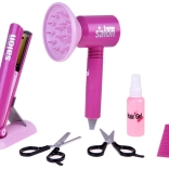 Uscătorul și placa de păr pentru copii imită instrumentele reale și susțin jocul de rol. Efectele luminoase și sonore amplifică experiența autentică de salon.