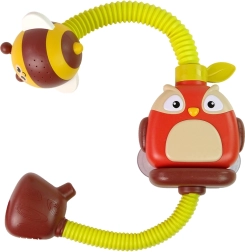 Jucăria de baie drăgălașă în formă de bufniță, cu duș ca o albinuță, transformă fiecare baie într-o distracție. Datorită ventuzelor, o fixezi ușor în cadă, iar la apăsarea ciocului apa este aspirată și curge din dușul superior. Jucăria susține dezvoltarea simțurilor, recunoașterea culorilor și formelor și îi ajută pe copii să se obișnuiască cu apa. Potrivită pentru copii de la 18 luni.