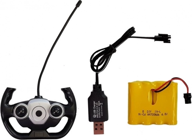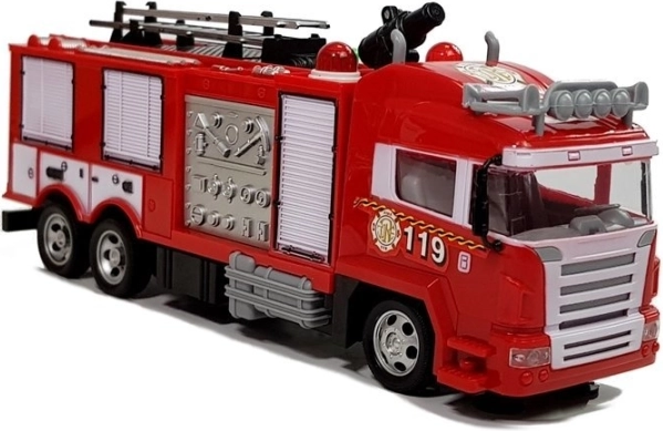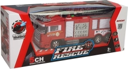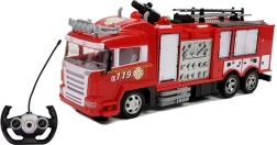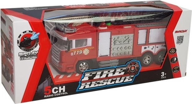 Posibilitatea de a controla vehiculul cu telecomanda permite deplasarea înainte/înapoi și dreapta/stânga, iar forma ce amintește de un volan se potrivește perfect în mâinile mici ale micului nostru pompier. O atracție suplimentară este stropirea cu apă: este suficient să turnați apă cu ajutorul unei pâlnii și distracția poate începe.