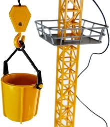 Telecomanda care funcționează la frecvența de 27 MHz permite rotirea părții superioare a macaralei și coborârea frânghiei pentru transportul obiectelor la fața locului. Poziția cârligului pe brațul macaralei se modifică manual. Structura macaralei este realizată din piese care se îmbină ușor, facilitând asamblarea. Este necesar să vă asigurați că frânghia este prinsă drept și nu este încurcată.