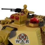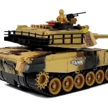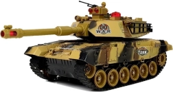 Acest tanc mare, vizibil de la distanță, la scara 1:18, reproduce fidel deplasarea unui blindat real: șenilele din cauciuc asigură tracțiune bună, turelă se rotește până la 300°, iar la „foc” vei vedea un efect spectaculos de recul. Iluminarea LED integrată și sunetele realiste de motor și împușcare intensifică fiecare duel.