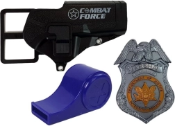 Include toc, insignă și fluier – tot ce are nevoie micul polițist pentru menținerea ordinii și scene pline de acțiune.