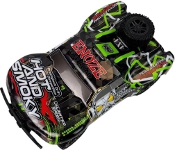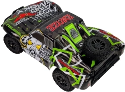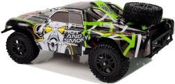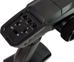 Pachetul este RTR – Ready To Run: în cutie găsiți mașina, telecomandă tip pistol 2,4 GHz, acumulator 7,4 V 850 mAh și încărcător. Raza de control este de aproximativ 50 de metri, autonomia de rulare în jur de 15 minute, iar încărcarea durează aproximativ 3 ore. Materialele robuste (piese metalice și din plastic, electronică, cauciuc) sporesc rezistența la impacturi.