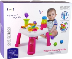 Măsuța este stabilă și rezistentă, fabricată din materiale sigure, netoxice în conformitate cu normele pentru jucării. Ideală ca primul centru interactiv de activități pentru copii de la 18 luni.