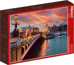 - Motiv realist al Parisului – iconicul Pod Alexandru al III-lea, cu o arhitectură elegantă.