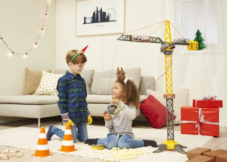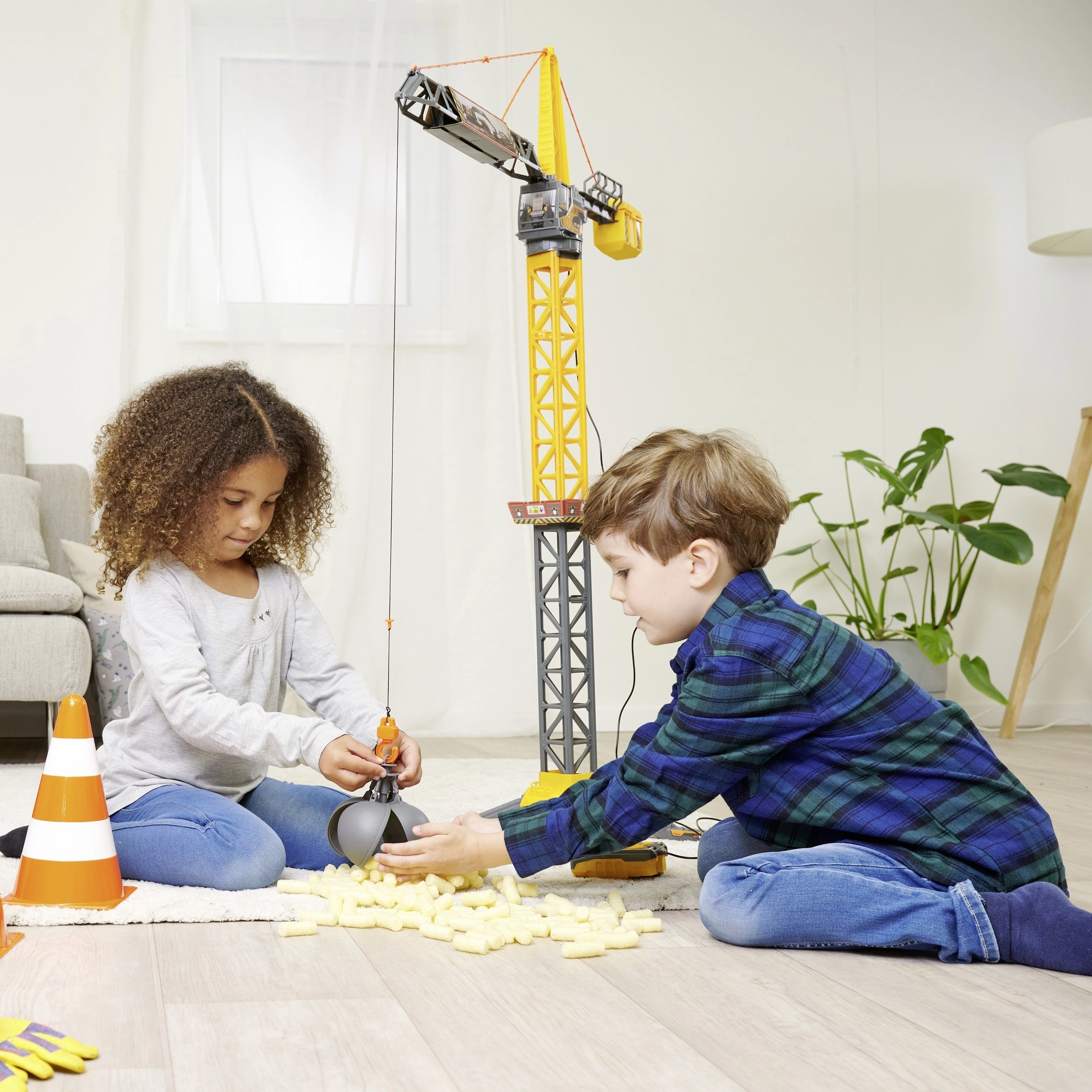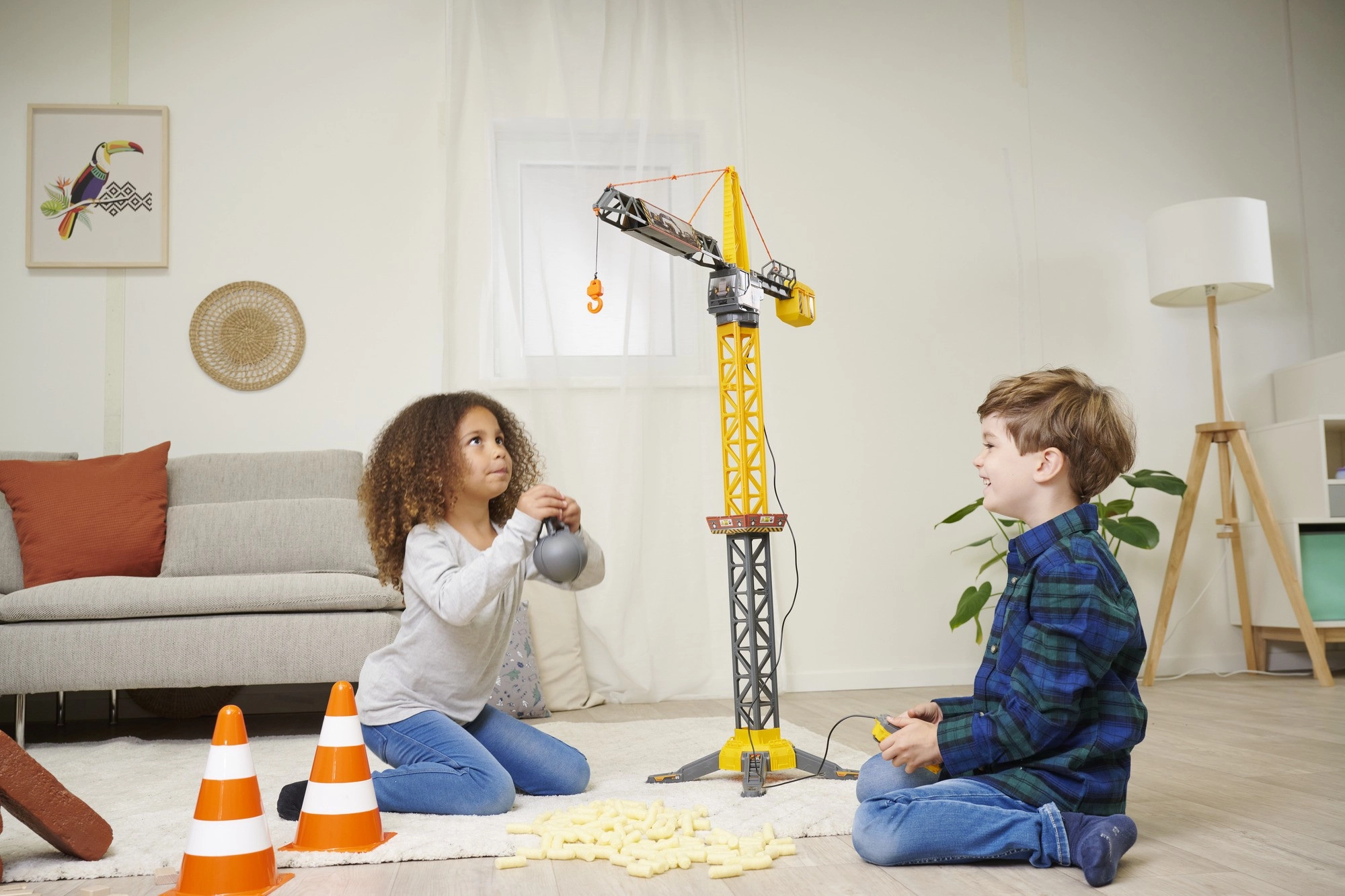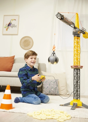 Macaraua permite o rotație lină de 360°, astfel încât poți muta ușor încărcătura oriunde în jurul bazei. Ideală pentru joacă pe un șantier realist și manevre precise.