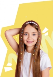 Conținutul pachetului: aplicator, 80 buc. pietricele strălucitoare, accesorii. Recomandat pentru copii de la 5 ani, sub supravegherea unui adult când sunt folosite în păr.