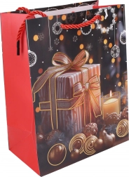Pungă cadou stilată, mărimea S, ideală pentru ambalarea cadourilor mici. Oferă dimensiuni de 23 × 18 × 10 cm, motive de Crăciun și transport facil. Disponibilă în 4 variante, cu mânere rezistente și hârtie de calitate pentru o predare sigură și elegantă a cadourilor.