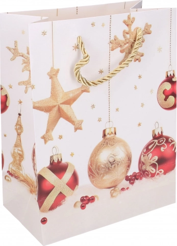 Punga cadou de Crăciun, stilată, mărimea L, încântă pe oricine vrei să îi oferi un cadou elegant și fără griji. Ideală pentru cadouri mai voluminoase, execuție solidă și design festiv. Sunt disponibile 4 variante de model.