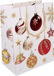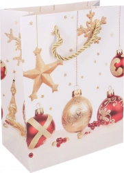 Pungă cadou de Crăciun stilată, mărimea M, care încântă prin formatul practic 26 × 32 × 10 cm și motivele moderne de sărbători. Ideală pentru ambalarea rapidă și elegantă a cadourilor. Sunt disponibile 4 variante de design pentru o asortare perfectă cu conținutul. Materialul rezistent și mânerele practice asigură transportul ușor și în siguranță.