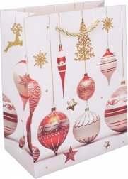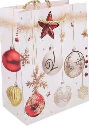 Pungă cadou stilată, mărimea S, cu dimensiunile 18 × 23 × 10 cm, cu motiv de Crăciun. Ideală pentru cadouri mici, cu mânere rezistente și hârtie de calitate pentru o ambalare sigură și elegantă. Disponibilă în 4 variante de design.