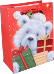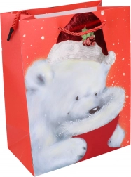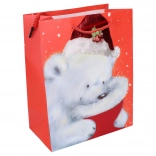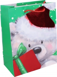 Pungă cadou de Crăciun stilată, mărimea L, impresionează prin construcția solidă și designul sezonier elegant. Ideală pentru ambalarea cadourilor mai mari, pentru o predare rapidă și reprezentativă. Disponibilă în 4 variante de modele, potrivită pentru copii de la 3 ani. Dimensiunile de 32 × 41,5 × 12 cm asigură spațiu suficient și practicitate.