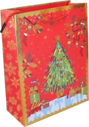 Această pungă cadou este concepută pentru cei care vor să ofere daruri celor dragi cu eleganță și stil. Fabricată din hârtie de calitate, asigură rezistență și durabilitate la transportul cadourilor. Designul este inspirat din tematica de Crăciun, contribuind la crearea autenticei atmosfere de sărbătoare.