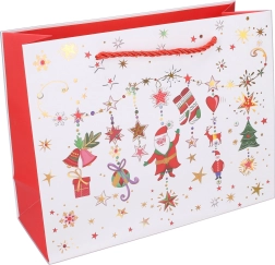 Oferiți cadourilor un aspect elegant și festiv datorită pungii cadou de Crăciun în dimensiunea practică XS. Punga este potrivită pentru obiecte mici, produse cosmetice, dulciuri sau decorațiuni mărunte și impresionează prin realizarea solidă și grafica atractivă.