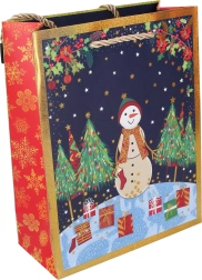 Pungă de cadou de Crăciun stilată, mărimea M, cu dimensiunile 26 × 32 × 10 cm, care ușurează ambalarea cadourilor și le conferă un farmec festiv. Oferă execuție solidă, format practic și 4 motive atrăgătoare de Crăciun.