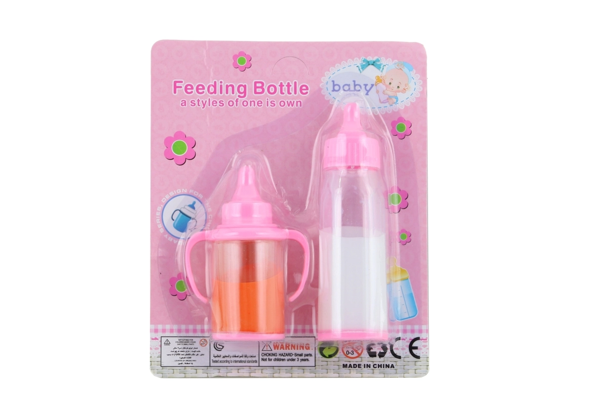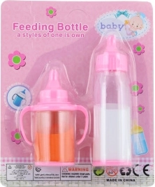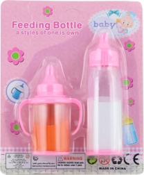 Set de sticluțe cu hrană pentru păpușă. Material: plastic. Conține lichide. Ambalat pe carton. Dimensiuni 17x14x3,5 cm. Vârsta 3+