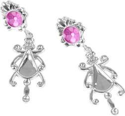 Coronița împreună cu cerceii oferă un aspect elegant datorită combinației de culoare argintie și pietricele roz.