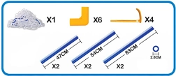 Seturile includ tuburi de plastic rezistente și accesorii care asigură stabilitatea porții în timpul jocului.