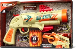 Puternica și distractiva pistolă cu burete Huntsman Big Brute (33 cm) cu rază de acțiune de până la 18 m oferă jocuri pline de acțiune fără compromisuri. Încărcătorul pentru 6 proiectile și pachetul cu 9 gloanțe din burete asigură distracție de durată, iar armarea cocoșului mută automat încărcătorul la următorul foc, declanșatorul trăgând instantaneu.