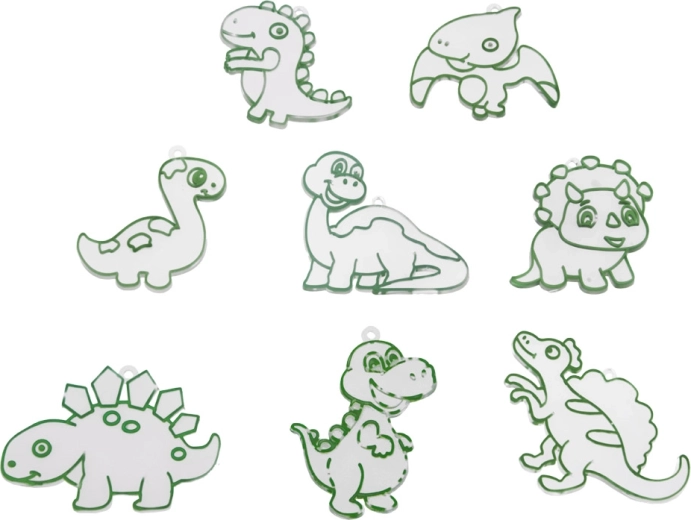 Acest set extins oferă copiilor o intrare distractivă în lumea creației. Culorile speciale se aplică ușor în liniile adâncite ale șabloanelor, nu depășesc marginile și ajută la realizarea unor brelocuri precise și impresionante. Motivele finalizate se decorează cu pietricele decorative și se agață pe lanțuri metalice cu bile – ideale pentru chei, rucsac sau ca decorațiune pentru cameră.