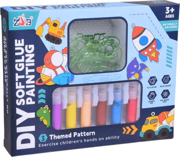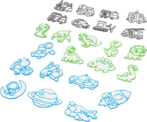 În set veți găsi motive populare din categoriile spațiu, preistorie și mașini, care îi vor atrage atât pe băieți, cât și pe fete. Activitatea dezvoltă motricitatea fină, răbdarea și creativitatea, iar copiii vor păstra creații originale de care pot fi pe bună dreptate mândri.