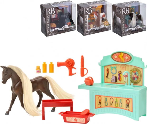 Îndrăgiți setul uimitor cu calul Royal Breeds, disponibil în trei variante diferite, fiecare având echipament unicat.