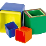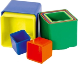 Această set de 9 cuburi de stivuit oferă distracție și învățare într-un singur produs. Datorită designului gol, copiii pot stivui ușor un turn înalt sau, dimpotrivă, le pot introduce unul în altul, exersând motricitatea fină, coordonarea mână–ochi și percepția spațială.