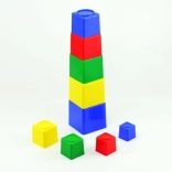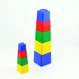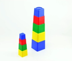 Stivuirea în turn și introducerea cuburilor unul în altul antrenează în mod natural coordonarea mână–ochi, prinderea și gândirea logică a copilului.