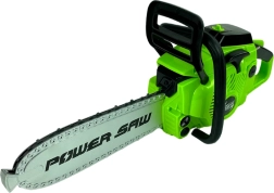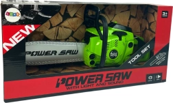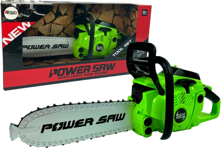 Acest fierăstrău cu motor pentru copii este conceput pentru a fi sigur și distractiv pentru cei mici. Fierăstrăul se activează prin apăsarea unui buton care simulează mișcarea lanțului de plastic sigur, permițând copiilor să trăiască emoția de a lucra cu un instrument real fără riscurile uneltelor adevărate.