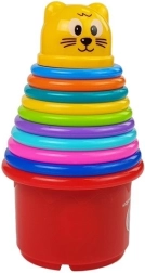Această piramidă colorată tip curcubeu este o jucărie ideală pentru dezvoltarea motricității și abilităților copilului. Se compune din cănuțe de culori diferite cu imprimeuri, iar cea mai mică cănuță are un imprimeu cu pisicuță. Piramida are o formă netedă, așa că este sigură în timpul jocului.