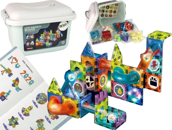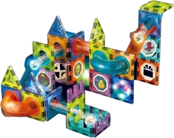Tobogan pentru bile Pista iluminată Blocuri magnetice 75 de elemente