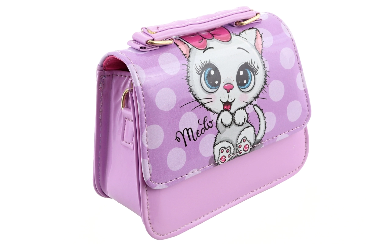 Căutați primul accesoriu stilat pentru micile domnișoare? Această geantă pentru copii cu adorabila pisicuță îmbină designul jucăuș cu practicitatea. Datorită unui singur compartiment încăpător, copilul își poate depozita ușor șervețelele, jucăriile mici sau micile comori. Construcția ușoară și mânerul rezistent asigură purtare confortabilă.
