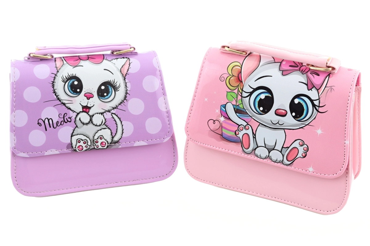 Geanta este disponibilă în 2 modele atrăgătoare cu motive de pisicuță – variantă roz și mov. Varianta este livrată în funcție de stocul actual. Ambalată în săculeț, potrivită ca un cadou drăguț pentru copii de la 3 ani.