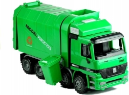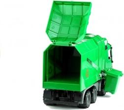 Această mare mașină de gunoi verde îi va încânta pe toți copiii care iubesc utilajele și jocul realist. Datorită trapei spate care se deschide și mecanismului inteligent de basculare, colectați ușor deșeurile și le goliți în benă. Cabina deschisă poate găzdui o figurină de șofer și un pasager, volanul se rotește, iar oglinzile retrovizoare mobile adaugă autenticitate jocului. Roțile profilate se descurcă pe diverse suprafețe, iar mișcarea inerțială asigură mersul după o ușoară împingere.
