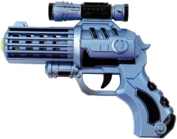 La apăsarea trăgaciului, pistolul luminează și redă sunete cosmice. Mâner ergonomic pentru o prindere confortabilă.