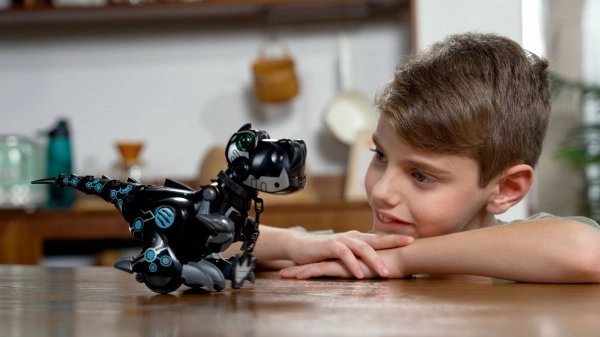 Datorită dimensiunii compacte de aproximativ 34 cm, încape ușor pe birou sau pe raft, oferind totuși funcții surprinzător de bogate – de la deplasarea pe podea până la fălcile care se mișcă și ochii luminoși. În pachet se află și o minge, care extinde posibilitățile de joc și încurajează activitatea.