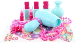 - Pachetul conține diverse accesorii: uscător de păr, pieptene, mărgele, inele și produse cosmetice care nu sunt funcționale, dar susțin jocul creativ.