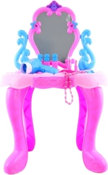 Această măsuță de toaletă minunată este ideală pentru toate micile prințese. Își aduce magia datorită unui feon funcțional și a unei luminițe pe partea superioară a oglinzii, care se aprinde și cântă după introducerea bateriilor. Setul include un pieptene, mărgele, 3 inele, autocolante și alte accesorii creative.